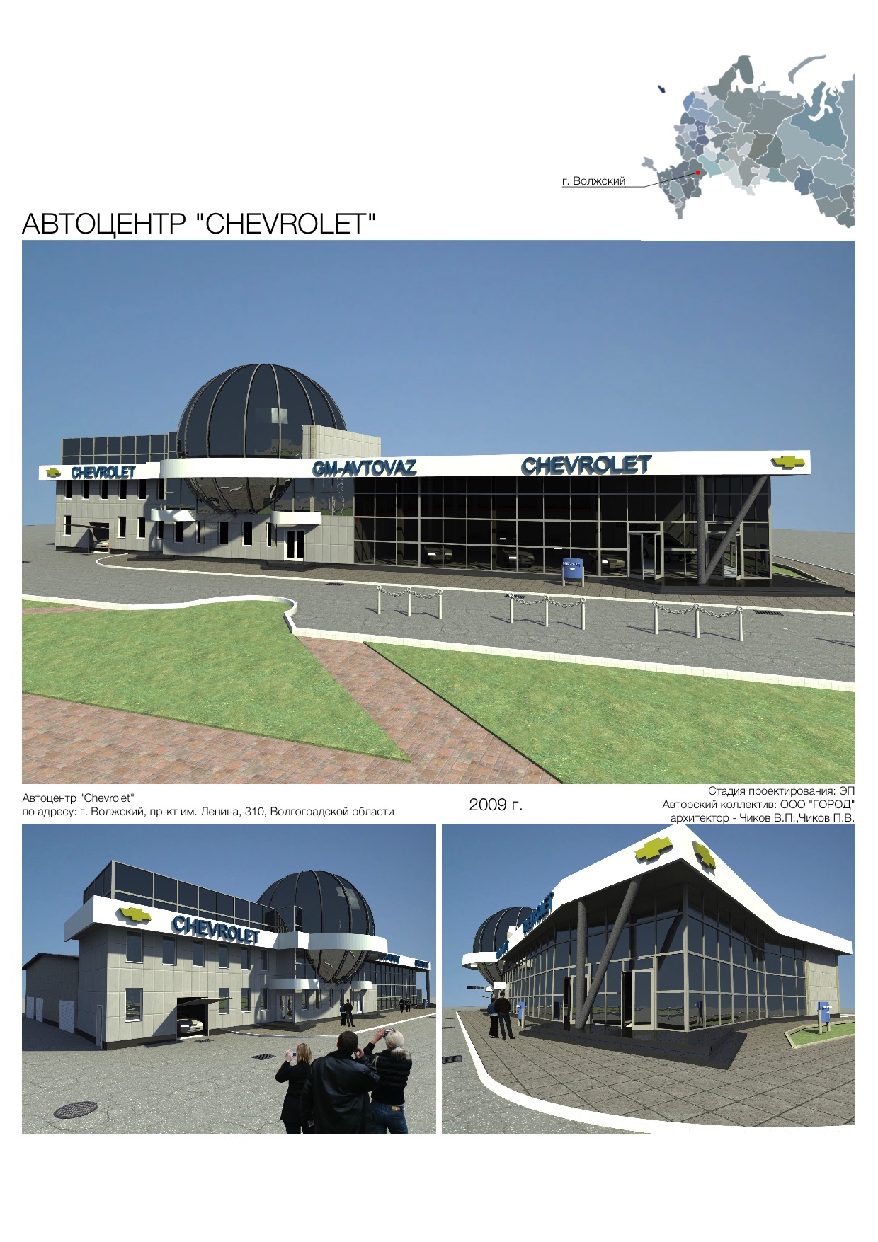 В течении 25 лет было разработано с десяток эскизных, проектных и рабочих комплектов документации ориентированных на развитие данной территории. Первым и основным был выставочный павильон, в процессе расширения дилерства появлялась необходимость размещения новых сооружений разного назначения. На фото и визуализациях проект материале можно рассмотреть разнообразные эскизы,