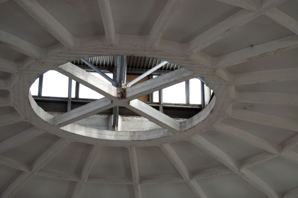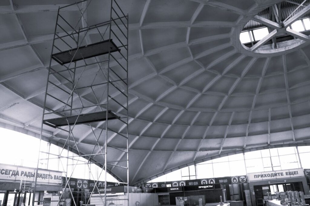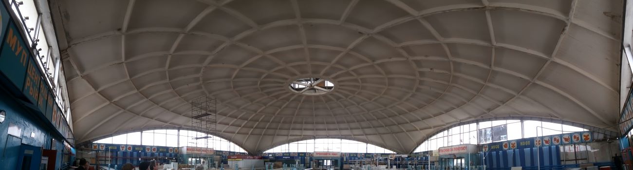 После обследования купола Центрального рынка в Волжском ( в эксплуатации с 1 9 8 2 года ) его на какое-то время закрыли для посещения. Там проводились ремонтные работы, так как здание частично было в аварийном состоянии. Претерпели изменения: фермы-диафрагмы, монолитные участки и ребристые панели покрытия купола. Заделывались трещины, покрывали поверхности грунтовкой и восстанавливали плиты.
