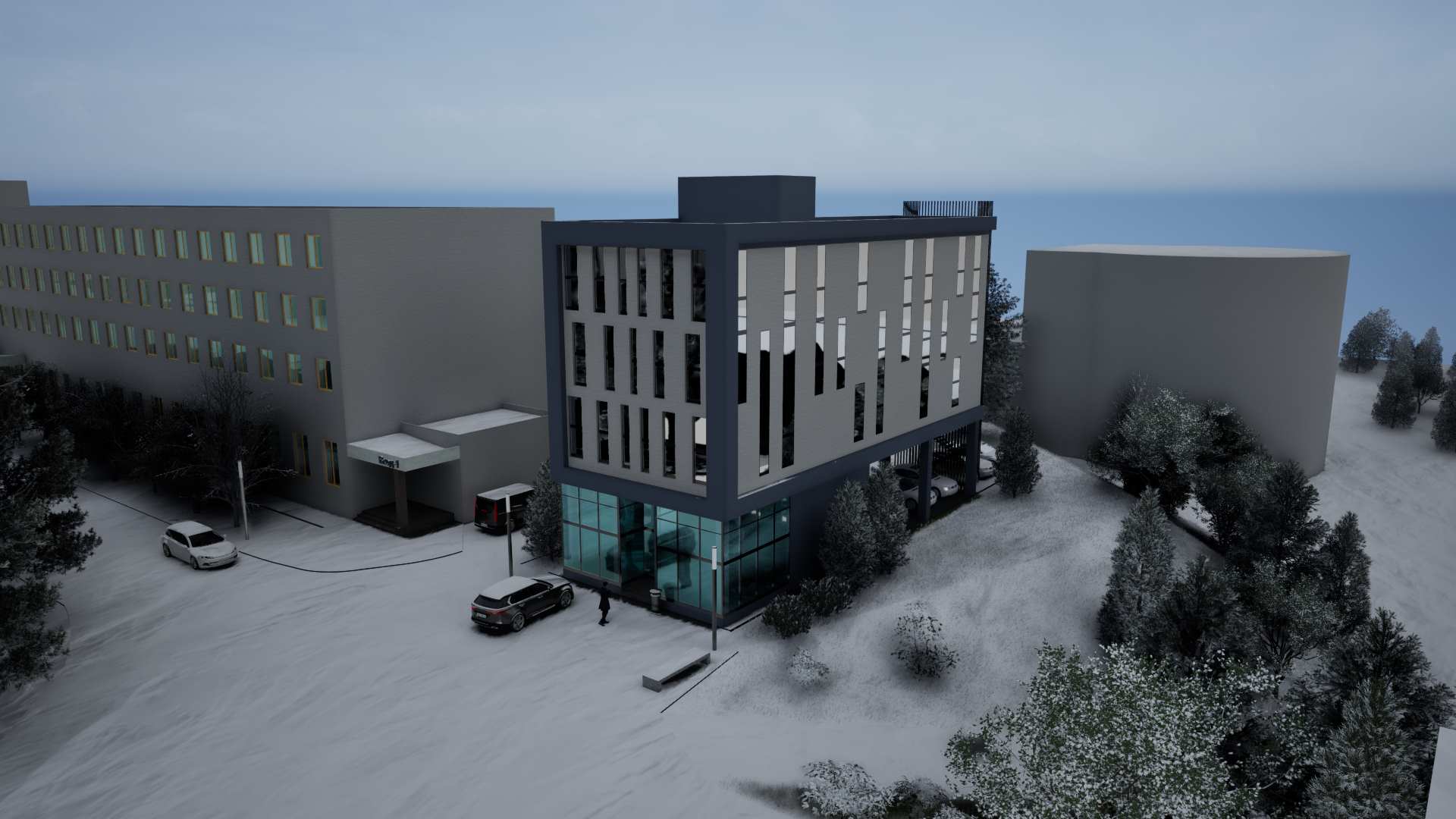 Реконструкция комплекса зданий. Второй Волгоград. Визуализация административного здания и прилегающей к нему территории.